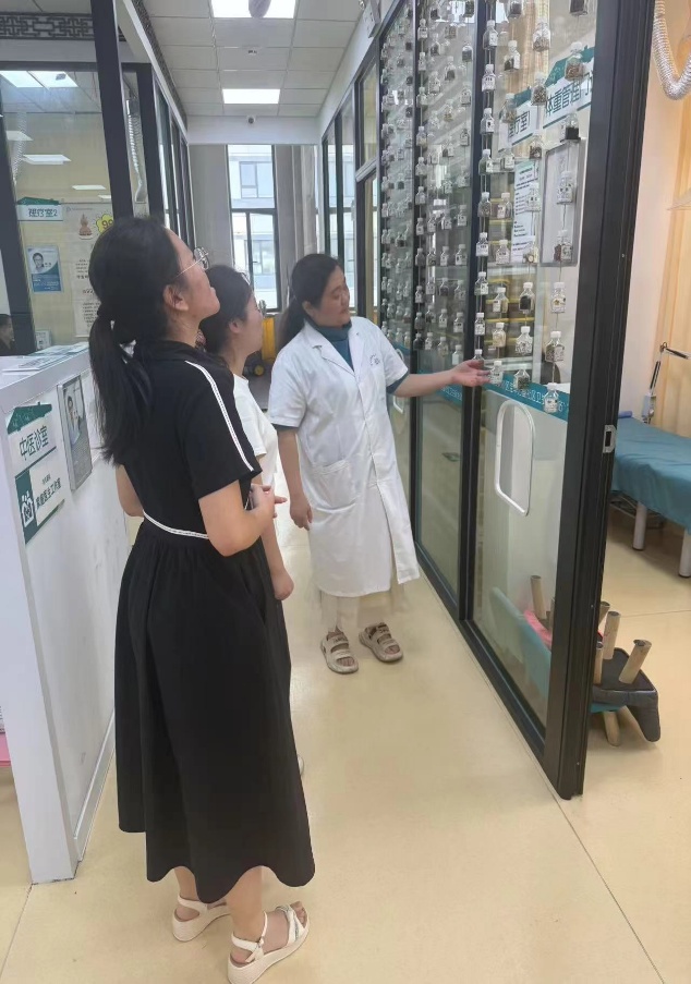此外,团队还特别关注中医药服务在基层的落地成效。在中医诊疗区,成员们观摩针灸、推拿等特色疗法操作,记录中医药服务接诊量;同时走访周边中药材种植户,了解本地桔梗、柴胡等地道中药材的采购、储存与使用情况,调研中医药在基层医疗中的认可度与推广空间。