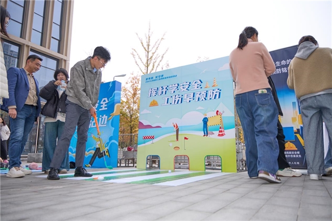 与心脏救助体验区的严谨专注形成鲜明对比,互动游戏区则以轻松趣味的形式让工伤预防知识“活”起来、“深” 下去。工伤预防“高尔夫”与套圈游戏,以“参与即答题、答题赢好礼”为核心激励,让机关工作者在沉浸式体验中轻松掌握安全要点。知识闯关互动游戏的题库包含机械操作规范、高空作业防护、工伤常见类型、安全标识解读、防护用品正确使用等知识,参与者需准确作答,答对即可直接领取礼品。“这种参与者变传播者的模式,让工伤预防知识在互动分享中实现二次传播,更让我们对相关政策法规的理解愈发透彻。”活动现场参与者告诉记者。